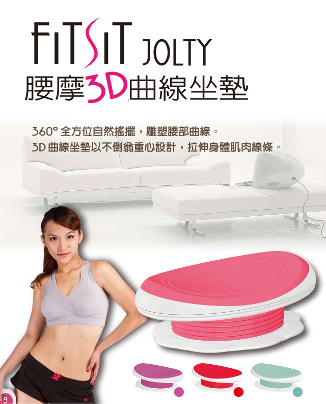 【FITSTI JOLTY 腰摩3D曲線坐墊】 360度全方位自然搖擺,雕塑腰部曲線。 3D曲線坐墊以不倒翁重心設計,拉伸身體肌肉線條。 台灣製造 專利產品