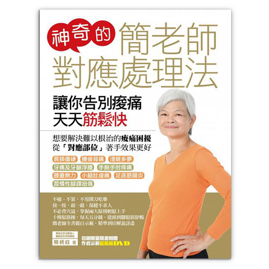 商品名稱:神奇的簡老師對應處理法 簡介:神奇的簡老師對應處理法:讓你告別痠痛天天筋鬆快 【內容簡介】 學童上課不專心,大人夜裡睡不好,按摩腳跟骨外側竟然就可以改善? 醫生束手無策的腳跟痛、足底筋膜炎,病根是在小腿肚裡的筋腱太緊! 肩頸僵硬痠痛,只需要壓壓手掌、腳掌的筋,就能氣血順暢遠離痠痛? 牙齦浮腫、拔牙後疼痛、出血,按壓腳趾頭就可以止痛止血? 膝蓋無力、腳踝扭傷,按壓上肢相對應關節裡的筋腱就可以加速痊癒? --「對應處理法」就是這麼神奇! 「頭痛醫頭,腳痛醫腳」效果有限。想要解決難以根治的痠痛困擾嗎? 「對應處理法」為你開闢一條容易學、效果好的養生健身之道! 知名抗病理療師簡?鈺老師根據「上病下治、下病上治」的原理,發展出「對應處理法」。簡要地說,就是人體的每一個部位,都有另外一個「相對應部位」。就像經絡穴位彼此的關聯性,在某一個穴位施力按摩或針灸,就能治療遠端部位的疾病、痠痛一樣,對應處理法是在疼痛部位的「相對應部位」上施力按摩或震盪,就能消除「疼痛部位」的疼痛。 不痛、不累、不用開刀吃藥;按一按、敲一敲,保健不求人。 掌握原則、要領,輕鬆學,身體力行,就能揮別痠痛不適。 十個鬆筋操招式,每天鍛鍊五分鐘,從頭到腳健康又舒暢。 全書由簡老師親自示範,動作精準到位,解說詳盡,一看就懂。 隨書附贈示範DVD,照著做就能氣血暢通、遠離痠痛。 讓你輕鬆解決:肩頸僵硬、腰痠背痛、淺眠多夢、手腕手肘疼痛、膝蓋無力、鐵腿、習慣性腳踝扭傷、腳跟痛、足底筋膜炎等困擾。 【作者介紹】 專業足部按摩達人、實證派抗病理療師/簡綉鈺 高中退休教師,全心投入研究、推廣足部按摩十二年。 從小到退休前一直體弱多病,為了改善健康,自修中醫學理,學習八段錦、太極拳。 退休後,拜師學會傳統的足部按摩的手法後,不斷修改傳統的按摩手法,將鍛鍊八段錦、太極拳的心得、訣竅融入按摩手法中,發展出「借力使力」、「四兩撥千金」的按摩手法和勁道。按摩手法裡靈活地融會了中醫學理和氣功原理為一體,能從一個人的一雙腳看出他內在隱藏的病痛,透過輕鬆省力的按摩手法,快速使人氣血暢通,神清氣爽,痠痛立消。 出身農家的簡老師一直渴望回歸田園,三年前移居到苗栗公館鄉後,繼續鑽研各種DIY養生健身之道。她發現鄉間的農民大都有嚴重的筋骨痠痛問題,於是累積在各社區、社團、協會等團體教導農民DIY擺脫筋骨疼痛的經驗,整理出「對應處理法」,希望所有的人都能輕鬆學會這種操作簡單,效果明顯的強身之術。 DIY健身養生往往需要一些輔助工具。工欲善其事,必先利其器。坊間販賣的按摩工具大都是商人設計出來的,未必實用、好用、有用。為了讓足部按摩和對應處理法能順利推廣,嘉惠大眾,簡老師在教學授課之餘,又自行設計了實用、功能多的按摩工具,讓DIY健身養生的人有利器在手,更能輕鬆有效地強身健體。 目前蟄居鄉間的簡老師,樂在公館鄉的「知足樂園」裡種植有機蔬果,教授八段錦、鄭子太極拳、鬆筋操等運動。農餘閒暇,以搖筆為文,推廣DIY健身養生活動為樂,並樂於到各機關團體傳授「對應處理法」。 作者部落格「簡綉鈺老師的生活保健園地」janjei.pixnet.net/blog 商品規格: ■ 品名:神奇的簡老師對應處理法 ■ 數量:1 ■ 材質/成份:紙張 ■ 規格:書本 ■ 認證:無 ■ 產地:台灣 ■ 保存期限:無