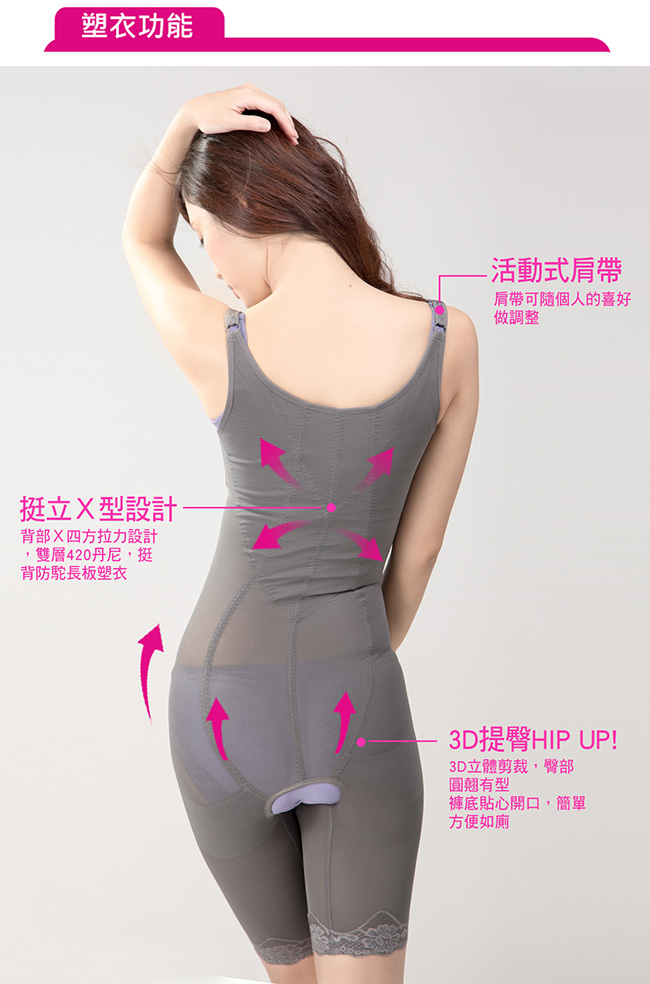 內容:塑身衣x1+精美內衣防塵束口袋X1   肩帶:不可拆、可調   彈性:雙層420D收脂布   尺寸:M~XXL   顏色:灰色       塑衣/塑褲請依照個人可以承受的範圍選購,若本身穿得很緊可以考慮選小一個尺寸會比較合適喔。       建議消費者穿著對照尺寸:   M 腰圍24~26、臀圍32~36   L 腰圍26~28、臀圍34~38   XL腰圍28~31、臀圍35~39   XXL腰圍30~34、臀圍36~40      洗滌方式:   1.請用中性洗潔劑手洗。   2.請用溫水手洗(請深淺色衣服分開洗滌)   3.不建議烘乾熨燙。   4.洗淨後請輕扭整型後倒掛夾在衣架晾乾。     注意事項 如商品本身有暇疵問題,請於貨到7日內來電客服中心辦理退換貨服務。  因商品屬個人衛生用品,請著貼身衣物再試穿唷! 所有商品均為新品,如有拆標、下水、污損、短缺,恕不接受退換貨。 辦理商品退換貨時,商品如有贈品或配件,麻煩請一併寄回,否則視同缺件無法受理喔!