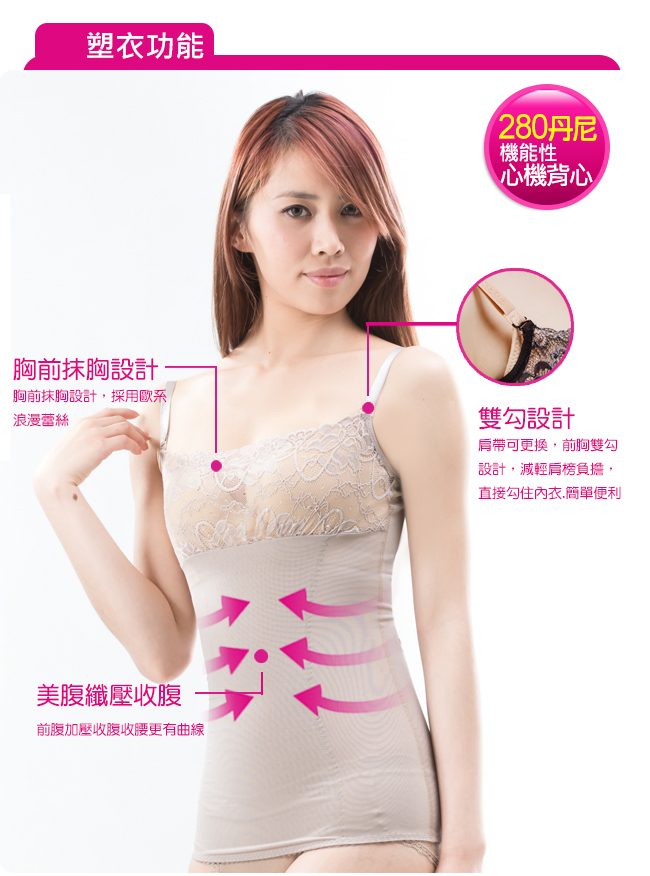 本商品規格  內容物品:背心*1  肩帶:不可拆  彈性:單層280D彈性布  顏色:淺可可色  尺寸:S/M/L/XL/XXL  材質:彈力纖維 SPANDEX 18% 尼龍NYLON 82%  產地:台灣      塑衣/塑褲請依照個人可以承受的範圍選購,若本身穿得很緊可以考慮選小一個尺寸會比較合適喔。  建議消費者穿著對照尺寸:   M 腰圍24~26、臀圍32~36   L 腰圍26~28、臀圍34~38   XL腰圍28~31、臀圍35~39   XXL腰圍30~34、臀圍36~40   洗滌方式:   1.請用中性洗潔劑手洗。   2.請用溫水手洗(請深淺色衣服分開洗滌)   3.不建議烘乾熨燙。   4.洗淨後請輕扭整型後倒掛夾在衣架晾乾。    注意事項  如商品本身有暇疵問題,請於貨到7日內來電客服中心辦理退換貨服務。   因商品屬個人衛生用品,請著貼身衣物再試穿唷!  所有商品均為新品,如有拆標、下水、污損、短缺,恕不接受退換貨。  辦理商品退換貨時,商品如有贈品或配件,麻煩請一併寄回,否則視同缺件無法受理喔!