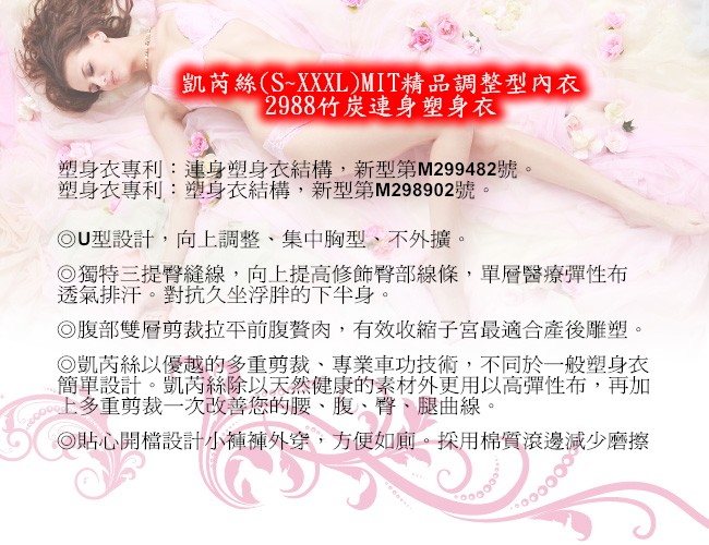 塑身衣專利:連身塑身衣結構,新型第M299482號。 塑身衣專利:塑身衣結構,新型第M298902號。 內衣專利:月牙片設計,專利產品M302905號。.jpg)