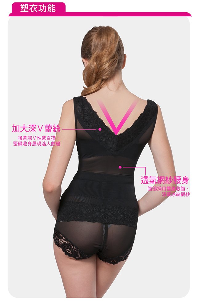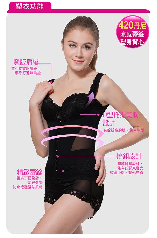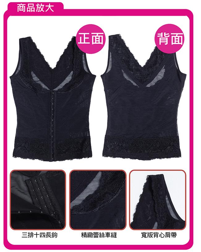 *涼感冰絲網紗 托胸收腹蕾絲排扣塑身背心