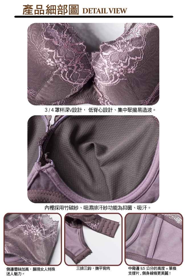 胸罩內有鋼圈,後釦式穿法,側邊內固定膠條