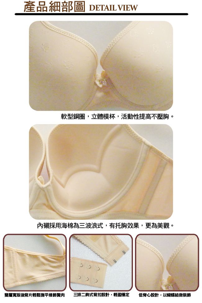 胸罩內有鋼圈,後釦式穿法,側邊內固定膠條