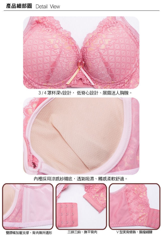 胸罩內有鋼圈,後釦式穿法,側邊內固定雙膠條
