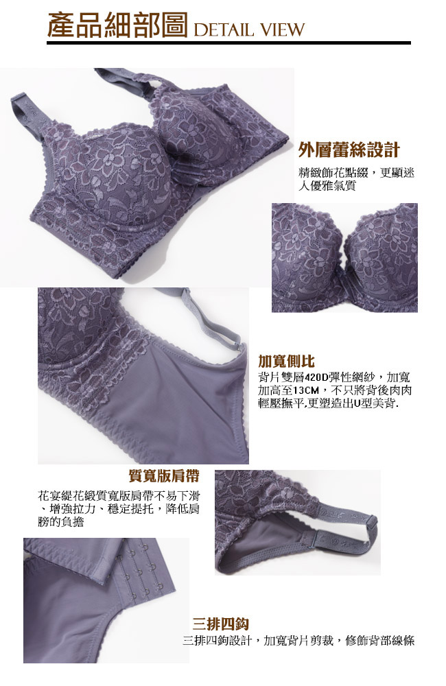 本商品規格 內容物品:內衣*1+內褲*1 胸墊款式:3/4罩杯絲綿 稱墊:可拆 配件:絲綿稱墊*1組 厚度:1cm 肩帶:不可拆、可調 背釦:背扣式、三排四勾 彈性:420D雙層高彈性布 顏色:紫羅蘭色 尺寸:32、34、36、38 B/C/D、40C/D 內褲:M、L、XL 洗滌方式: 1.請用中性洗潔劑手洗。 2.請用溫水手洗(請深淺色衣服分開洗滌) 3.不建議烘乾熨燙。 4.洗淨後請輕扭整型後倒掛夾在衣架晾乾。 注意事項 如商品本身有暇疵問題,請於貨到7日內來電客服中心辦理退換貨服務。 因商品屬個人衛生用品,請著貼身衣物再試穿唷! 所有商品均為新品,如有拆標、下水、污損、短缺,恕不接受退換貨。 辦理商品退換貨時,商品如有贈品或配件,麻煩請一併寄回,否則視同缺件無法受理喔!.jpeg)