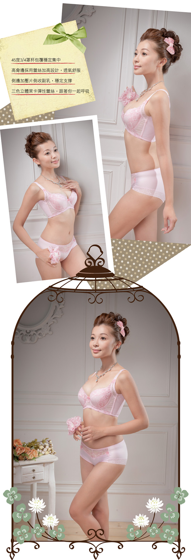 本商品規格 內容物品:內衣*1+內褲*1+精美內衣防塵束口袋*1 胸墊款式:3/4罩杯絲綿 稱墊:可拆 厚度:1cm 肩帶:不可拆、可調 背釦:背扣式、四排三勾 彈性:雙層280D彈性布 顏色: 粉紅 尺寸 :32、34、36、38 B/C/D/E、40 C/D/E 內褲:M、L、XL 洗滌方式: 1.請用中性洗潔劑手洗。 2.請用溫水手洗(請深淺色衣服分開洗滌) 3.不建議烘乾熨燙。 4.洗淨後請輕扭整型後倒掛夾在衣架晾乾。 注意事項如商品本 身有暇疵問題,請於貨到7日內來電客服中心辦理退換貨服務。 因商品屬個人衛生用品,請著貼身衣物再試穿唷! 所有商品均為新品,如有拆標、下水、污損、短缺,恕不接受退換貨。 辦理商品退換貨時,商品如有贈品或配件,麻煩請一併寄回,否則視同缺件無法受理喔!
