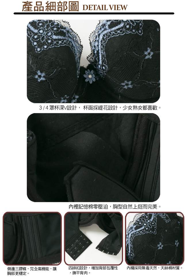 杯型:3/4罩式軟接拼貼罩杯
