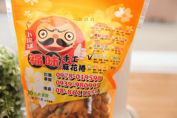 團購最夯美食*獨家跨海來台 【福味】小琉球麻花捲 純手工捲成麻花形狀,三大保證!!絕不添加任何人工色素,絕不添加任何香料,絕不添加防腐劑,吃的開心!!更是吃的健康!! 【福味】小琉球麻花捲-海苔 規格:約200g(+-10g) X10包 保存方式:常溫下保存即可,請勿放置冰箱內冷藏 保存期限:30天 保存日期:壓印於袋底