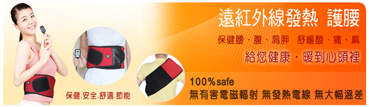 腰部、肩胛,均可使用 收納控制器 遠紅外線的特點 令水分子活性化,提高身體的含氧量 人體約70%是水,遠紅外線能使水分子產生共振,提高身體的含氧量,細胞因而恢復活力,使人精力更旺盛!!進而提高抗病能力,延緩衰老。 改善循環系統 人體水分子通過共振,提高皮下深層的溫度,促進血流速度,同時提供人體細胞氧氣和營養,可有效預防高血壓,心血管疾病,腫瘤,關節炎,四肢冰冷麻痺等疾病。 促進新陳代謝 循環系統得到改善後,新陳代謝產生的廢物,以及引發病痛的尿酸可迅速排出體外,並減輕肝臟及腎臟負擔。 平衡身體的酸鹼度 遠紅外線能淨化血液,改善皮膚,預防因尿酸過高而導致骨骼關節疼痛,並能降低電磁波對人體的干擾。 保敷寧採整塊碳纖維面狀發熱體,受熱均勻。 有效熱敷,能促進血液循環,舒緩酸痛麻等現象 產品內容 一.遠紅外線發熱膜組(發熱膜x1、包布套x1、溫度控制儀、車充及DC接頭x1) 二.12V 3A低壓直流電源供應器x1 (贈品) 三.說明書(內含保證卡) 產品規格 一.尺寸: H210MM x L1320MM 二.使用低壓直流12V 3A 操作說明 1.先將電源變壓器(12V3A)的DC插頭插入溫控器DC線插孔中, 再將電源變壓器(12V3A)DC電源插頭插入110V-220V市電插座中並插緊, 通電後進入待機狀態。 2.開機:長按"開/關"鍵約3至5秒開機,顯示幕顯示當前發熱產品溫度。 3.溫度設定:按"+"或"-"鍵設定適合您的溫度,此時顯示幕顯示的是您設定的溫度,最高設定溫度為55度,(停止操作3至5秒後顯示幕返回當前發熱產品溫度顯示)。 4.關機:在開機狀態下,長按"開/關"鍵約3至5秒關機,顯示幕熄滅進入待機狀態。 5.本控制器,有兩小時,自動斷電設計。 備註: 當設定的溫度高於當前發熱產品溫度1度C開始加熱,同時顯示幕右下角加熱指示小點亮,當設定的溫度低於當前發熱產品溫度1度C停止加熱,同時加熱指示燈熄滅,如此迴圈來恒定發熱產品溫度。 注意事項 1.使用任何產品前請仔細閱讀說明書。 2.請將遠紅外線系列產品放在手上及身體需要熱敷部位(嚴禁通電使用時折皺,以免過熱危險)。 3.嚴禁在遠紅外產品上放置其他發熱器具(如熱水袋,暖手包等)加熱,以免造成過熱危險或損壞產品。 4.不可用尖銳物品刺破產品,避免有觸電危險。 5.為避免意外,兒童及生活不能自理的人應在監護人的照看下使用產品。◎孕婦及重大疾病者,請依照醫師指示斟酌使用。 6. 如發現產品不熱的情況時,請先檢查接線是否都正確,連接處是否插緊,當接線正常但不熱時,應送到指定的維修點維修。不得隨意自行拆修。如自行拆修導致產品無法修復或引起意外,由用戶自行負責承擔損失。 7. 產品不用時應放在乾燥通風處,需防潮,防摔,防塵,上面不能壓重物,避免壓出褶皺。不能烘烤,不能熨燙,不能水洗,避免造成發熱體絕緣層損壞,(遠紅外線系列產品的外布套可以清洗,但是須將發熱膜和電源線取出) 8. 長期不使用時,應拔掉產品電源插頭,杜絕事故隱患,不可用拉扯電源線的方式拔起插頭或拖拉溫控器。 9. 為保證品質,請使用本公司配備的專用電源,溫控器不可放置於加熱的產品上。 10. 使用產品時請按自身適宜的溫度,勿設定過高以確保安全。 ※本組件發熱膜不可,洗滌,摺皺,烘烤,不可整燙。 ※注意:若有過敏現象之人,請穿著輕薄衣物,避免直接接觸皮膚。 ※本產品以投保富邦產物保險股份有限公司產品責任保險1,000萬產品責任險 ※本產品通過臺灣標準檢驗局BSMI-EMI電器檢驗認證。 保修須知 1.請如實填寫保修單,本保修單請妥善保管,以作為維修憑證。 2.本產品保修期為一年。 3.品質保證:保修期內無法維修的產品可進行調換,可以修復的產品進行無償維修。在保修期內產品使用者未按照說明書使用產品,進行違規使用所出現的產品故障為有償維修。
