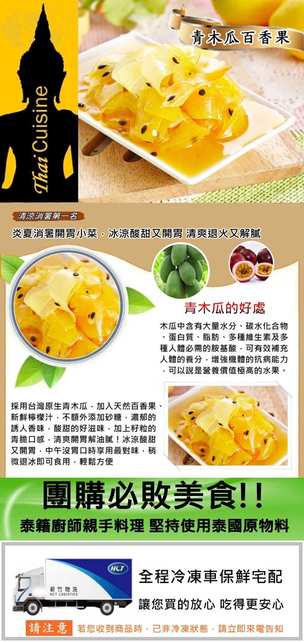 世界三大名湯之一 涼拌青木瓜絲~愛吃泰式涼拌菜應該不陌生~~不過我們家是百香果青木瓜,應該有滿多人聽過這種口味的吧?畢竟當時也有在市面上轟動的熱賣好一段時間,不過不知道的也沒關係,現在不但有機會知道,還可以吃的到呢!! 我們家的口味酸甜適宜,吃過都說讚!!重點是我們家的新吃法,用冷凍的方式,只要稍微退一下冰就可以了,在吃個過程中也可以吃到包覆在外面的微冰,冰冰涼涼~~酸酸甜甜~~~就像初戀的感覺一樣,絕對可以陪你度過這酷熱的夏天~~~~