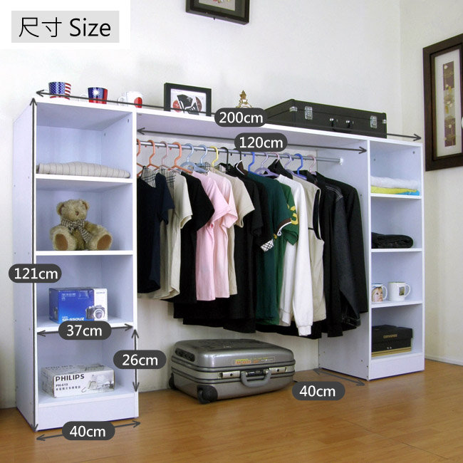 ◆商品品名:40公分[深]x200公分[寬]x121公分[高](單吊衣桿+八大格)-吊衣櫃/吊衣櫥