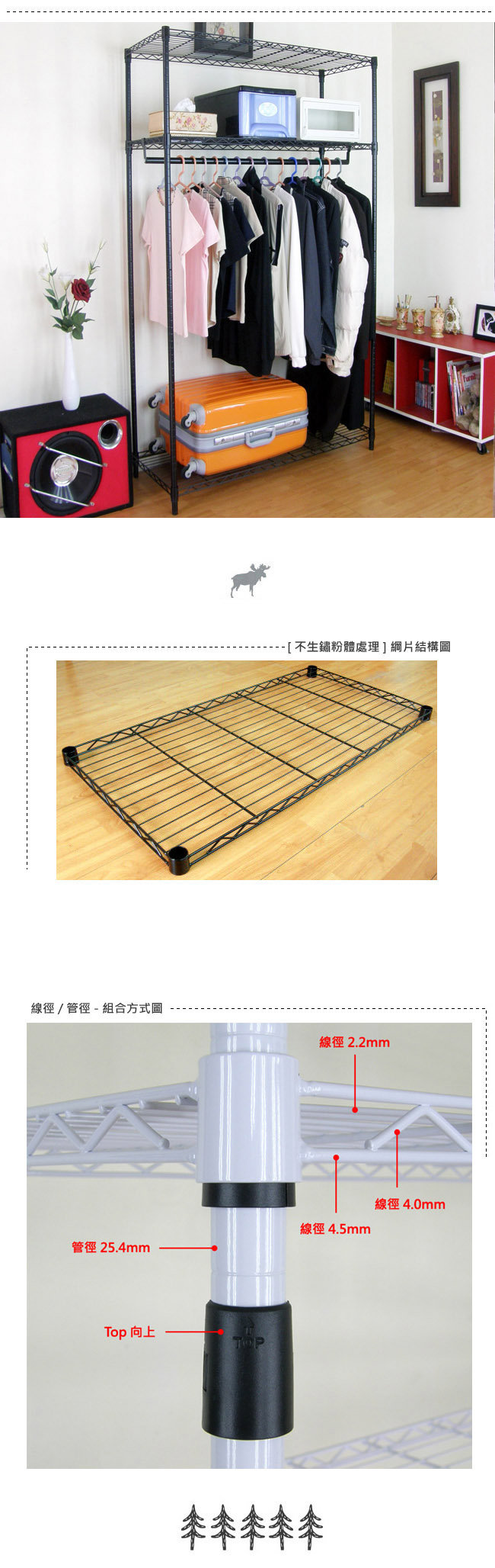 ◆商品品名:45DX90WX180H/公分-三層[金屬鐵線網型](單吊衣桿)吊衣架