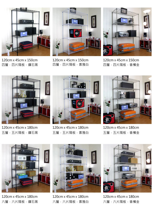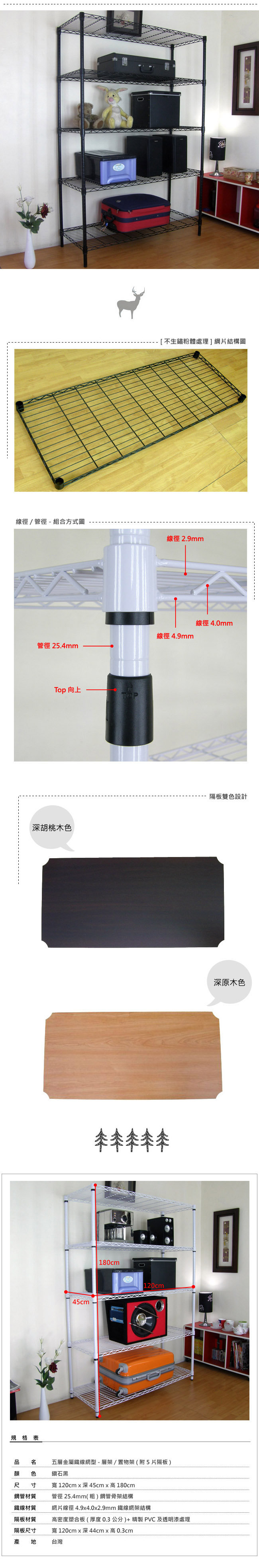 ◆商品品名:45DX120WX180H公分-五層金屬鐵線網架/置物架[不生鏽粉體處理]附5片隔板