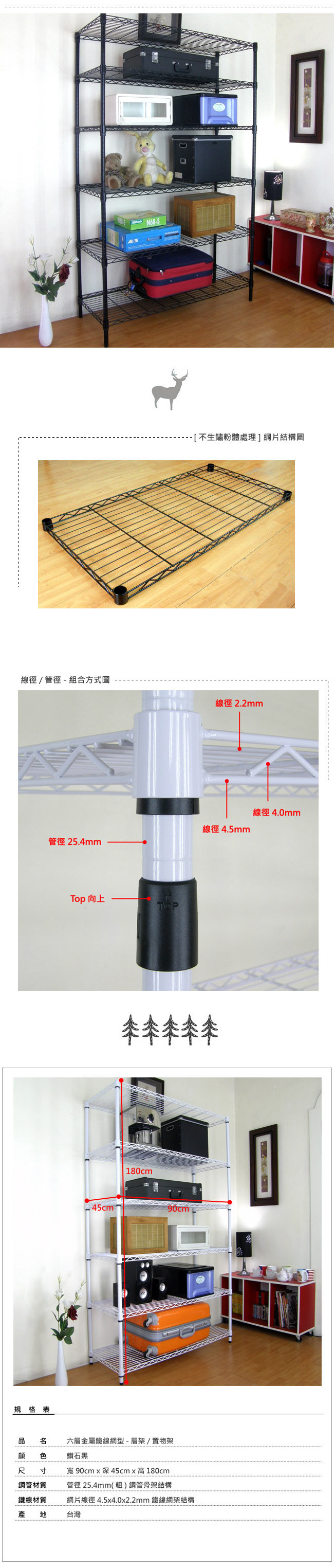 ◆商品品名:45Dx90Wx180H公分-六層金屬鐵線網架/置物架[不生鏽粉體處理]