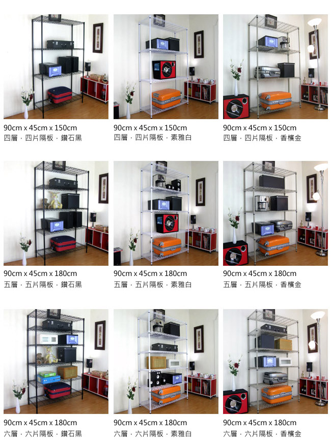 ◆商品品名:45DX90WX180H公分-六層金屬鐵線網架/置物架[不生鏽粉體處理]附6片隔板