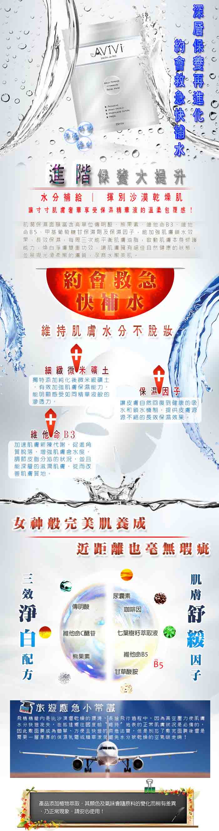 經獨特技術處理後的微米級純化天然陶礦,它的獨特之處在於能提高與保養原液更有效的結合,並可將精華分子有效鎖與其中,可延長肌膚的保濕時間。又因應消費者需求及台灣的氣候與膚質狀況, AViVi 所開發的每一系列產品,都經過數十次的安定及低敏測試,並通過SGS(UB/2013/30833、UB/2013/30834)無苯甲酸酯類防腐劑及重金屬檢測,提供您安全有效的產品。安心使用才能成為您心中最大的滿足。