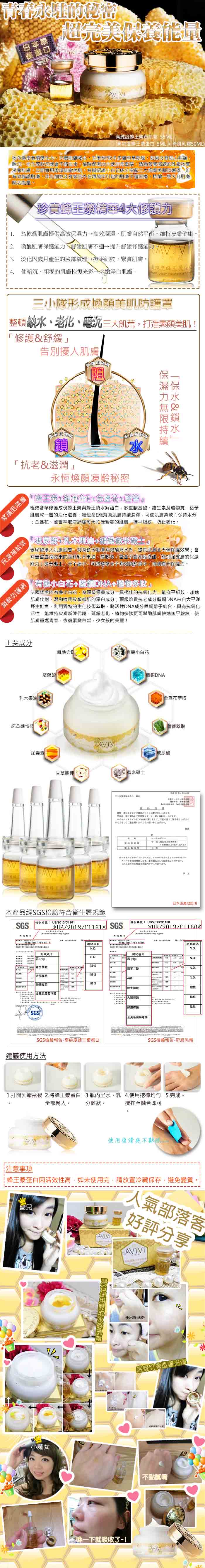 ※本產品蜂王漿水解蛋白其顏色及氣味會隨蜜粉源及時間而稍有差異,乃正常現象,請安心使用。 將「高純度蜂王漿蛋白」,倒入奇肌乳霜中,接著用挖棒輕輕地混合兩者,待兩者攪拌均勻,釋放高效精華成分於乳霜中,取珍珠大小的乳霜,塗抹全臉,使用時利用掌溫,均勻軟化豐厚的濃稠度,搭配適當的按摩,緊實臉部的線條,給予肌膚細緻絲滑的效果,打造極致逆齡晶透無暇的完美肌!