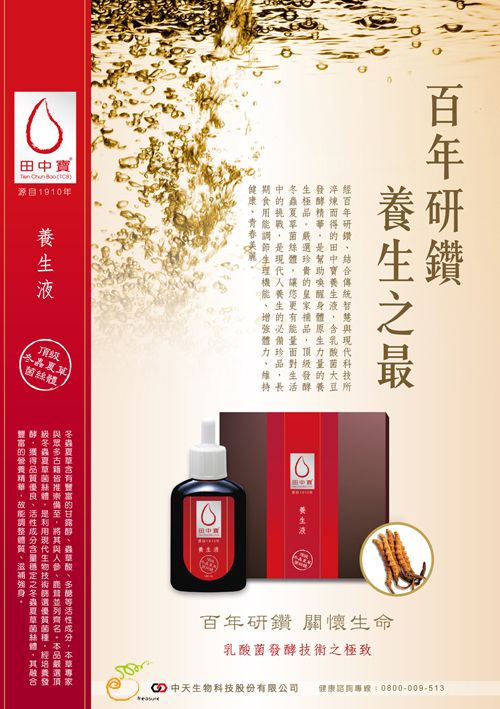 冬蟲夏草菌絲體頂級配方 關於國家品質獎: • 標章由來 生策會於 1998 年創設之「國家生技醫療品質獎」,為台灣生技醫療界之最高榮譽 , 2004 年起,行政院衛生署加入主辦行列 , 並特別設置「國家品質標章」, 秉持最嚴謹的專業驗證,以科學實證之角度,從不同面向徹底檢視所有參選產品與服務品質,為民眾健康把關。 • 標章的意義及宗旨 「國家品質標章」以胚胎陰陽互動之循環往復的意象,象徵周流不息的生生之道。並輔以英文字「 E 」與 「 Q 」作為設計出發點,正代表 “Excellent Quality” , 象徵最高品質之表彰 ,更傳達全人類對健康生命的期許,以及自我超越品質的要求。 • 得獎原因、專家評語 綜合蔬果發酵液係以 88 種純天然蔬果為原物料進行萃取 植入 12 株益生菌種,經過 540 天醱酵而成 富含豐富而完整的維生素、礦物質、胺基酸、消化酵素群及活性益菌,補充維持健康所需的營養,進而調整體質 採用微生物共生醱酵技術 (MSF) 製成,純天然液態的小分子的營養素,便於人體使用且吸收效率高。 在食品衛生安全方面,獲得 ISO 、 HACCP 等品質安全認證,並符合 CNS2377 濃縮果漿標準,全程依照 GMP 規範生產製造。 天然且高營養價值之酵素食品,可提供給國人作為日常保健的優質天然保健食品,不但符合現代預防醫學的概念,更可以間接減少醫療資源的過度消耗。.jpg)