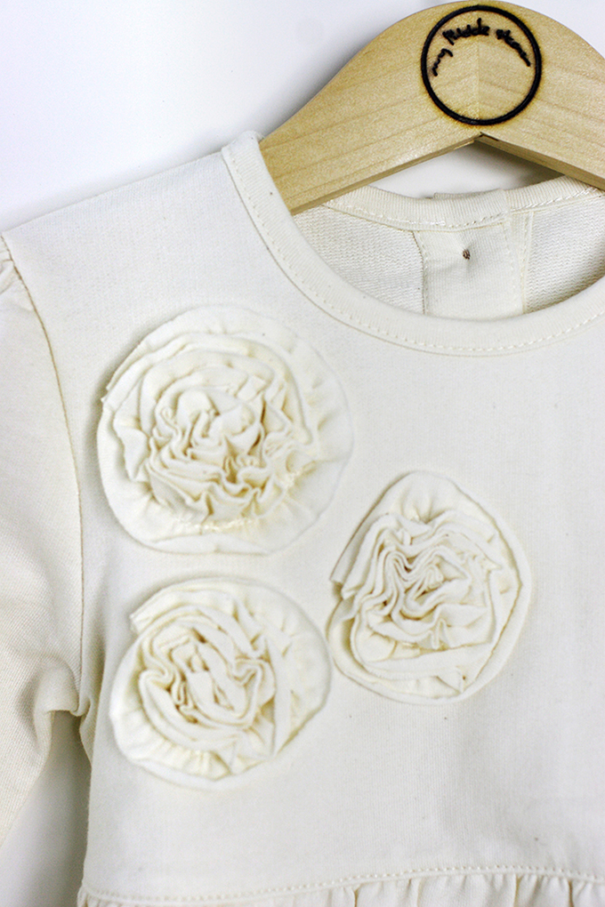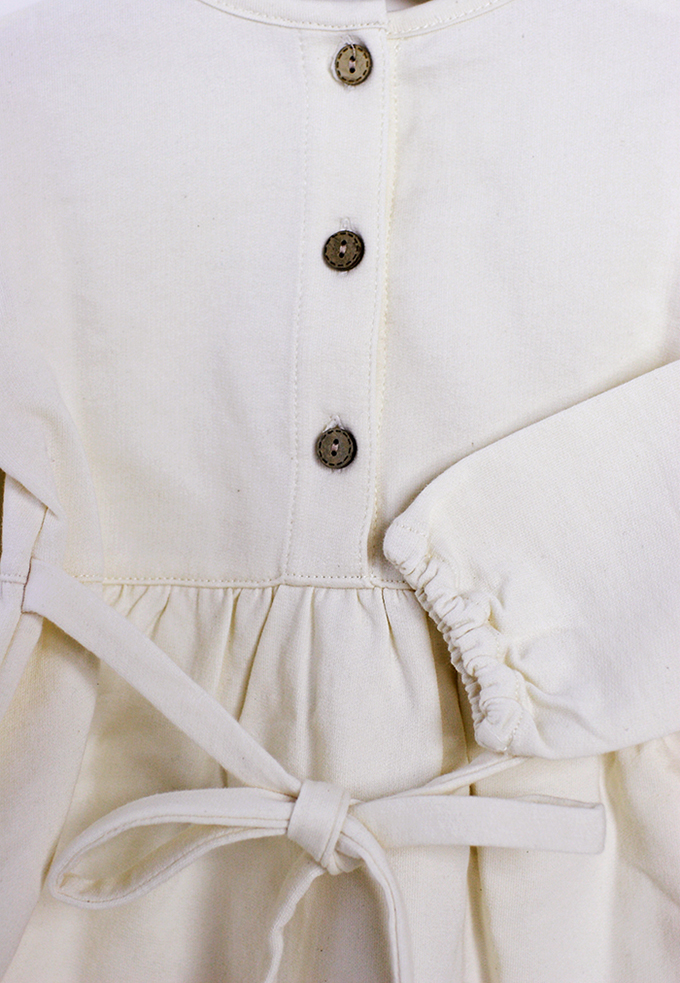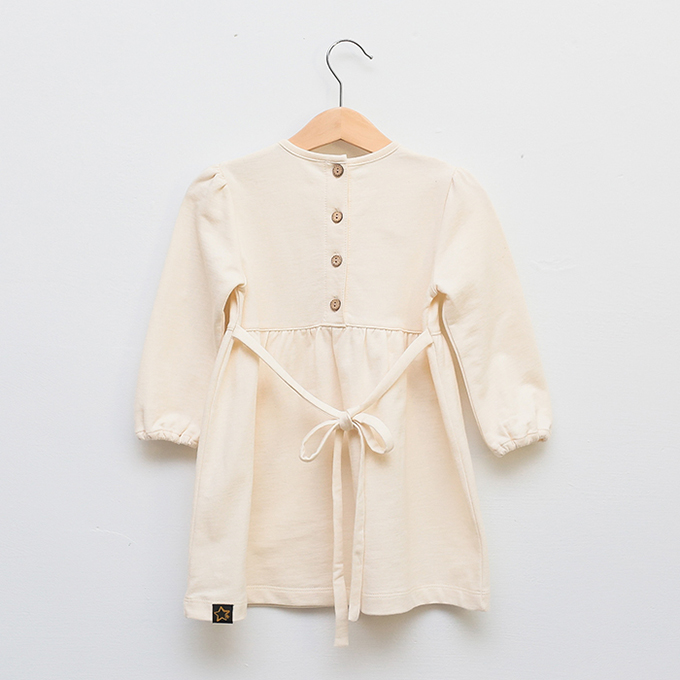 我是躲在時鐘後面的第七隻小羊 我很會躲貓貓 、我很勇敢、我好棒棒 [特色] 稍厚材質,除了保暖小寶貝,穿著更顯質感 一朵一朵的手工花, 增加了整件娃娃裝的溫度 背後綁帶設計 ,瘦寶寶、胖寶寶都可以穿出自己的型態 不再限制在衣服的版型 [材質] 100% 有機棉 環保椰子扣
