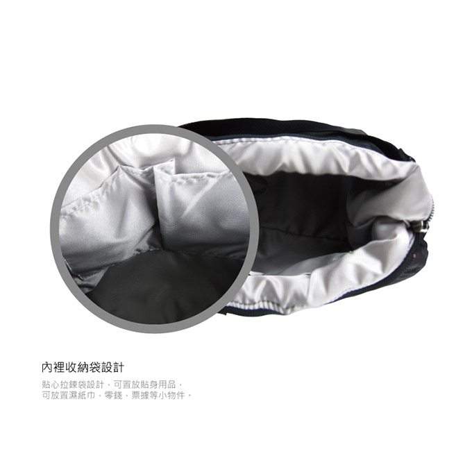 夾層:外層收納袋 x2、內層收納格 x2、內層拉鍊暗袋 x1