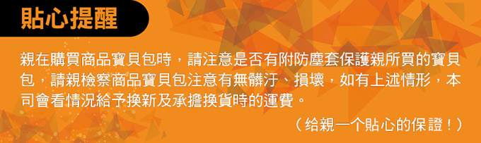為保障會員權益,177Buy提供會員七天鑑賞期,期間單筆訂單可免運費辦理退貨一次,若退換貨超過兩次以上,運費請自行負擔。鑑賞期間請妥善保存商品發票、商品相關配件與包裝、贈品或加購品等,若遺失或商品損毀,恕無法受理退換貨申請。