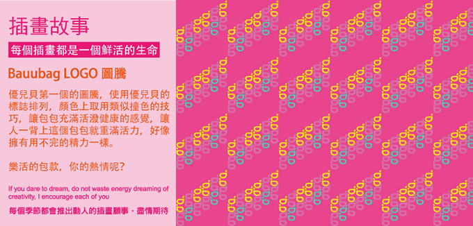 我們是一群熱愛包包的年輕人,生於台灣長於台灣。台灣擁有豐富的資源、優秀的人才、完整的工業技術,卻獨獨無法走出台灣走進世界。我們深深思考著這樣的問題。 鑑於台灣自有品牌包包之稀少,國人在購買上的選擇也以國外品牌為主,因此 BAUUBAG 由然而生。