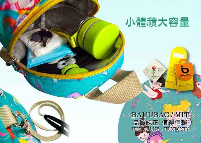 活潑的圖案, 明亮的色彩, 小巧的包包, 滿足每個小孩的夢想。 Only Two 創作概念 小女孩們跳上跳下,露出了可愛小褲褲,這是一張使用明亮色彩,希望每個人看了都能心情愉悅、會心一笑的作品。 簡介 畢業於東京設計學院插畫科。喜歡各種可愛小事物,也喜歡觀察女孩兒的種種微妙情緒。透過色彩豐富的手繪插畫,詮釋女孩內心可愛及黑暗的一面。 「我畫我發現的黑色小玩笑,也畫我自己的內心戲,並用花俏的顏色包裝起來。這是我們之間的小秘密喔!」 簡介 我們是一群熱愛包包的年輕人,生於台灣長於台灣。台灣擁有豐富的資源、優秀的人才、完整的工業技術,卻獨獨無法走出台灣走進世界。我們深深思考著這樣的問題。 鑑於台灣自有品牌包包之稀少,國人在購買上的選擇也以國外品牌為主,因此 BAUUBAG 由然而生。 BAUUBAG 希望藉由這個平台,提供插畫家一個大展才華的舞台,並結合台灣傳統工業技術,創造一個品質優良的商品,能讓台灣的美台灣的好在世界舞台上發光發熱。 以流行、紙印花以及與插畫家合作為包包設計主軸的 BAUUBAG ,品牌精神為實用與時尚,堅持 MIT 、設計與世界接軌。BAuuBAG希望每個人都有屬於自己的 寶貝包! 就讓 BAUUBAG寶貝包 豐富我們的人生!