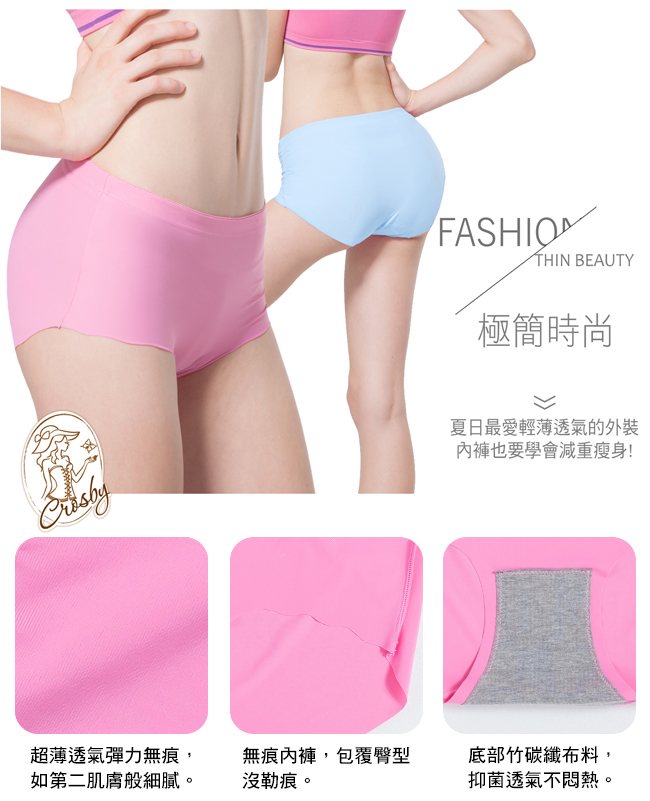 【Crosby 克勞絲緹】156098(FREE)透氣竹炭纖維無痕內褲3入組 共6色