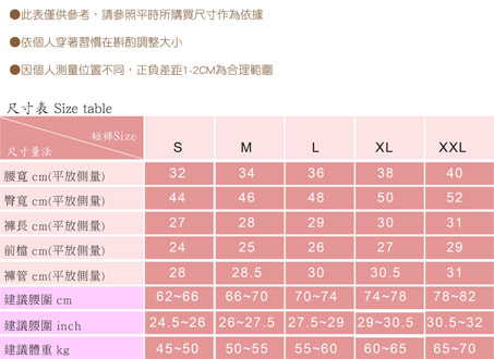 本商品規格 內容物品:運動短褲*1 顏色:白色 尺吋:S、M、L、XL、XXL 材質:polytester 聚酯纖維 80%,spandex 20% 產地:台灣 洗滌方式: 1.請用中性洗潔劑手洗。 2.請用溫水手洗(請深淺色衣服分開洗滌) 3.不建議烘乾熨燙。 4.洗淨後請輕扭整型後倒掛夾在衣架晾乾。 注意事項: ※ 商品可能因拍攝產生色差,圖片僅供參考,商品依實際出貨樣式為準。 ※ 退.貨僅受理全新狀態之商品 (包含吊牌完整未拆、未下水、無污損、未沾異味、包裝及配件完整)。 ※ 基於保障消費者個人衛生,貼身衣褲恕不提供試穿。 ※ 貼身衣物屬細緻物品,退.貨時請以原出貨包裝返回,勿以重物堆疊或擠壓,避免商品變形,若因未完整包裝或其他可歸責您的事由導致商品受損,恕不受理退.貨相關事宜。 ※ 收件時請確實檢視、清點商品件數,如有疑慮請立即反應,逾鑑賞期後恕不受理缺件疑議