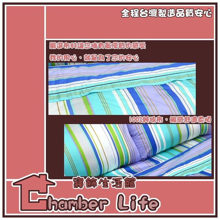 本公司為專業寢飾工廠,秉持著低價格與高品質的信念,以最實質的商品來呈現。賣場商品皆為自家打樣生產後,親自"實品"拍攝,絕非布商所提供的樣品圖片,保證100%自家台灣工廠生產