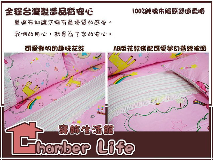 本公司為專業寢飾工廠,秉持著低價格與高品質的信念,以最實質的商品來呈現。賣場商品皆為自家打樣生產後,親自"實品"拍攝,絕非布商所提供的樣品圖片,保證100%自家台灣工廠生產