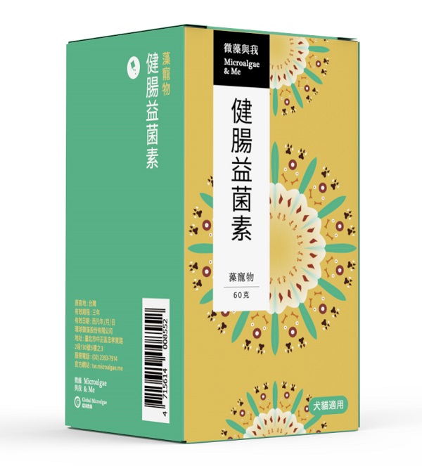 健腸益菌素 有機微藻+益生菌,調整腸胃機能,讓消化不良、軟便、腹瀉、口臭都不見了! 活性益生菌幫助腸胃道健康,改善嘔吐、軟便、腹瀉、便秘問題。 70%的免疫系統依靠健康腸道,改善過敏、搔癢現象。 有機綠藻促進毒素及廢物代謝,改善體味、口臭、便便臭。 有機藍藻提供全方位的植物營養,讓毛孩充滿活力,健康滿分。 嘔吐、軟便、搔癢、體臭皆是寵物常見的不適症狀,與日常的不潔飲食、食物過敏、消化道機能等息息相關。健腸益菌素 以人用等級的保健素材,由專業營養師調配成寵物專屬的保健食品,有助於平衡消化道菌叢生態,幫助毒素及廢物的排除,恢復健康及平衡的消化機能。 優勢: LS-66胞子乳酸菌:來自日本的有益菌種,能夠通過消化道至腸道增生成有益菌叢,抑制壞菌生長,幫助良好的消化道及免疫機能。 天然的超級食物:由全球頂尖培養場所培養的藍藻及綠藻,具多國有機認證,營養含量豐富,能補充飲食中不足的營養,並幫助抗氧化及廢物排除,維持最健健康狀況,因此被稱為綠色超級食物。 無添加人工化合物:寵物加工食品中時常添加化學成分、及人工調味劑,長期食用容易對寵物的健康造成負擔,引起慢性疾病。 長期食用達到理想的食療效果: 良好的消化機能:充分吸收飲食中的營養、並促進毒素及廢物排除,便便健康不沾黏 健康的免疫系統:70%的免疫系統在腸道,改善過敏體質、搔癢及腹瀉困擾 皮膚及毛髮:藍藻的天然γ-亞麻仁油酸幫助皮膚形成天然保護膜、減少皮屑、使毛髮健康 活力健壯:藍藻、綠藻富含天然抗氧化劑及維生素,提升健康及營養均衡,使精力充沛、活力十足 食用方法:每日1~2次,依照寵物體型取適當份量加入日常飲食中。 小型<10kg: 1.5克(約1平匙) 安心保證: 人用等級健康素材 專業營養師調配 無添加人工化合物 不過度加工 通過SGS微生物檢驗 通過SGS重金屬檢驗