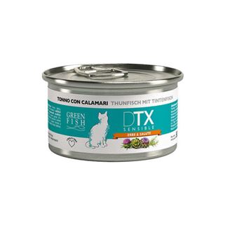 GREEN FISH葛林菲 DTX低敏護肝貓食糧-鮪魚+小管 低敏抗過敏高嗜口 含現撈魚類,主成份為鮪魚,好消化並可降低食物過敏風險,功能性香藥草有助於益肝、腎健康,幫助排出毒素,減少食物引起不耐症,劣質毛髮、皮膚及消化障礙。 【商品成分】 鮪魚(46%),烏賊(4%),必需礦物質,香藥草(迷迭香,朝鮮薊,奶薊) 【建議餵食量】 3公斤以下 每日1~2罐 【營養分析】 水分 ---- 81%, 品牌:GREEN FISH葛林菲
