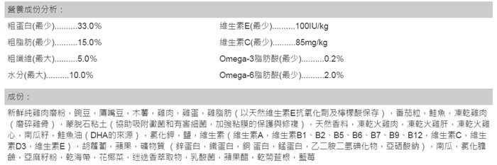 • 高蛋白顆粒飼料+冷凍乾燥生肉塊=方便營養+健康。