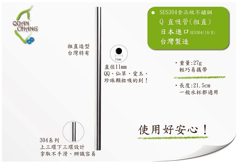 Q直吸管—SUS304(18/8) 食品級不鏽鋼醫療級處理