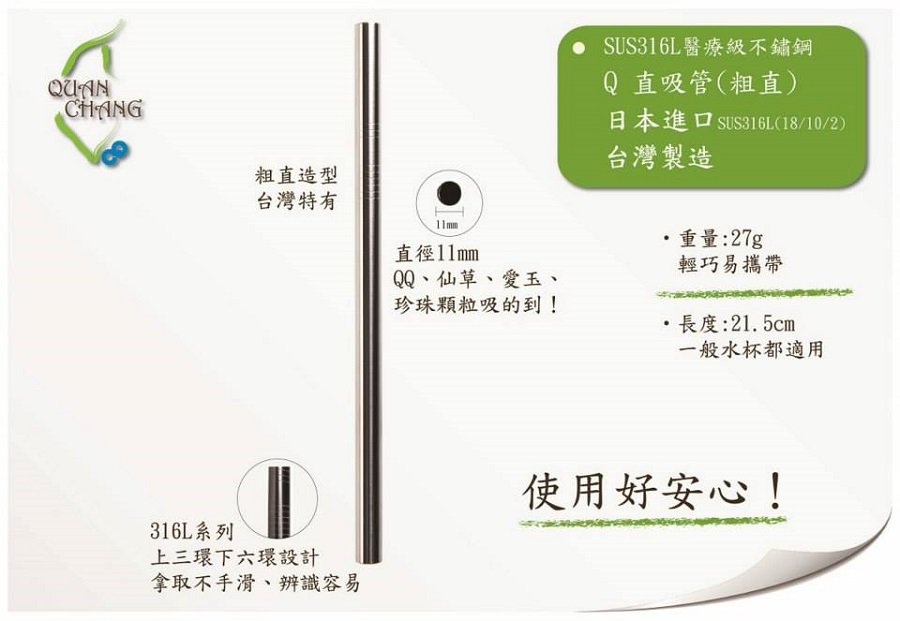 Q直吸管—SUS316L(18/10/2)食品醫療級不鏽鋼